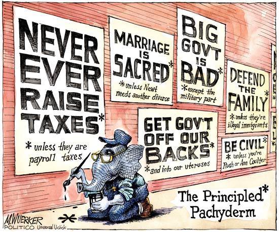 Bereits im Januar (hatte ich bisher verpasst) hatte einen meiner Lieblingsökonomen in seiner Kolume für die New York Times dargestellt, dass die US-Politik sich zumindest auf republikanischer Seite von der Wissenschaft und Fakten völlig losgelöst hat. Politico Karrikaturist Wuerker hat das passend ins Bild gesetzt (rechts). Krugman kommt zu dem Schluss: